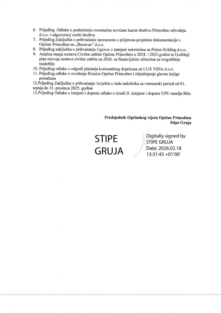 Poziv za 5. redovnu sjednicu Općinskog vijeća Općine Primošten